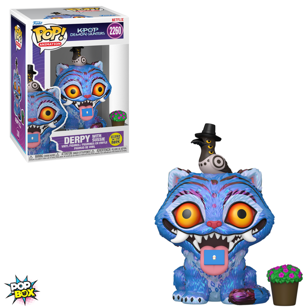 Chegou uma dupla hilária direto do filme Guerreiras do K-Pop! O Funko POP! Derpy com Sussie #2260 traz o gato azul e o pombo de chapéu mais divertidos do longa, em uma versão POP! cheia de personalidade. Esta edição captura a amizade e as travessuras da dupla, que rouba a cena com suas aventuras engraçadas e momentos memoráveis ao lado das protagonistas do filme.