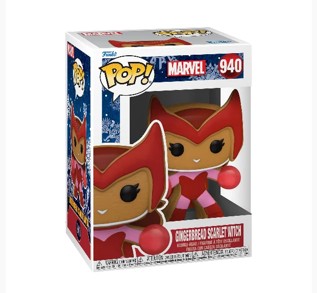 A Feiticeira Escarlate ganhou uma versão tão fofa quanto deliciosa no Funko POP! Gingerbread Scarlet Witch #940! Inspirado nos tradicionais biscoitos de gengibre, o colecionável transforma Wanda Maximoff em um cookie natalino superestilizado, com detalhes em glacê que imitam seu traje clássico vermelho e rosa.