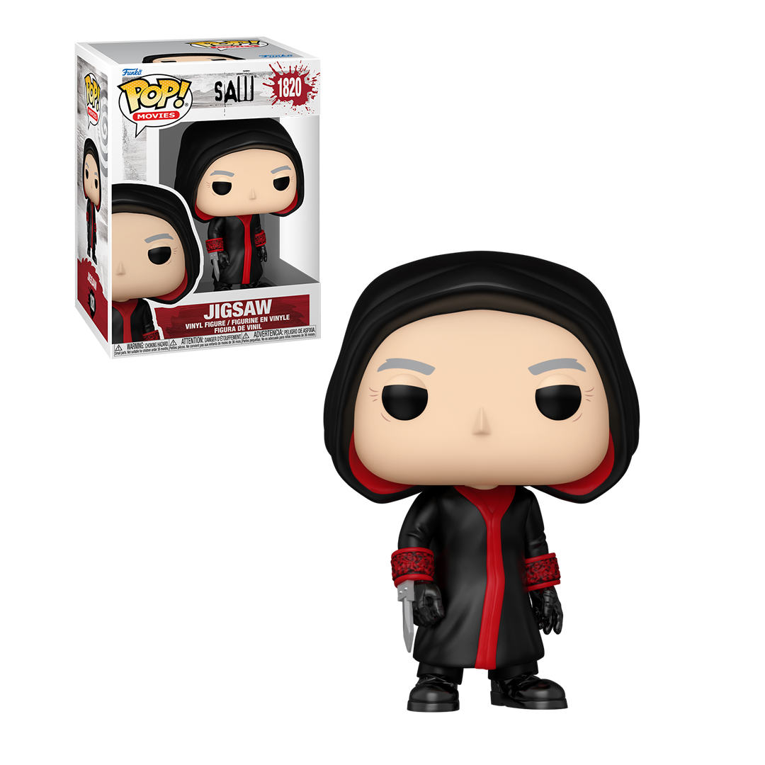 O mestre dos jogos mortais chega à sua coleção com o Funko POP! Jigsaw #1820, uma homenagem ao vilão mais icônico da franquia Jogos Mortais (Saw). Com seu terno preto, gravata vermelha e o rosto pálido marcado pelas espirais sombrias, Billy the Puppet, o famoso boneco usado por Jigsaw, aparece em sua forma mais clássica e perturbadora.